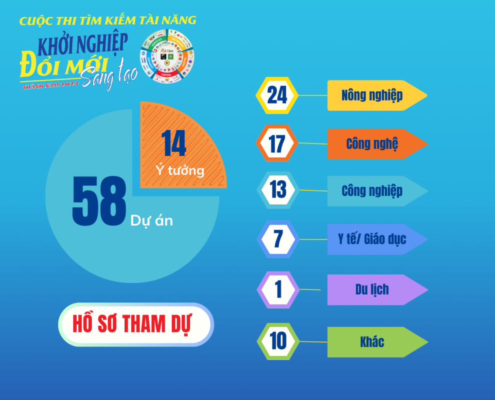 Lĩnh vực nông nghiệp: với 24 hồ sơ, các dự án/ý tưởng tập trung vào các giải pháp đổi mới và phát triển nông nghiệp bền vững. Những dự án này không chỉ giải quyết những thách thức trong sản xuất nông nghiệp mà còn hướng tới việc bảo vệ môi trường và nâng cao chất lượng sản phẩm.