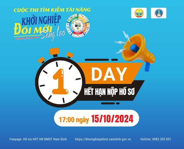 CHỈ CÒN 1 NGÀY ĐẾN HẠN CUỘC THI KHỞI NGHIỆP ĐỔI MỚI SÁNG TẠO THÀNH NAM 2024! 🚨