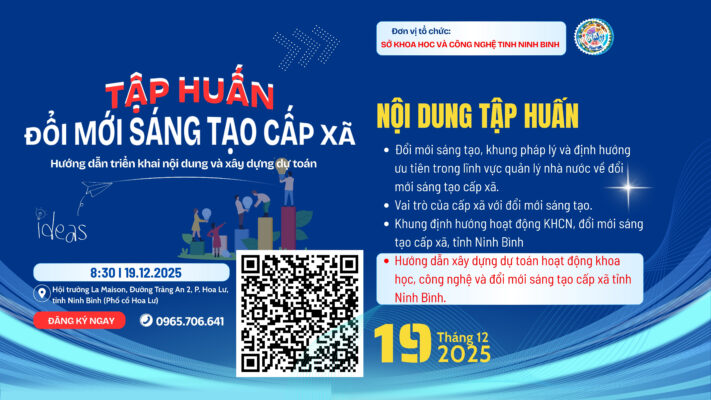 Thực hiện các nghị quyết, kế hoạch của Trung ương và định hướng của Bộ Khoa học và Công nghệ, Sở Khoa học và Công nghệ tỉnh Ninh Bình tổ chức lớp tập huấn hướng dẫn triển khai và xây dựng dự toán hoạt động khoa học, công nghệ và đổi mới sáng tạo cấp xã, phường, nhằm hỗ trợ cán bộ cơ sở triển khai hiệu quả hoạt động đổi mới sáng tạo tại địa phương.